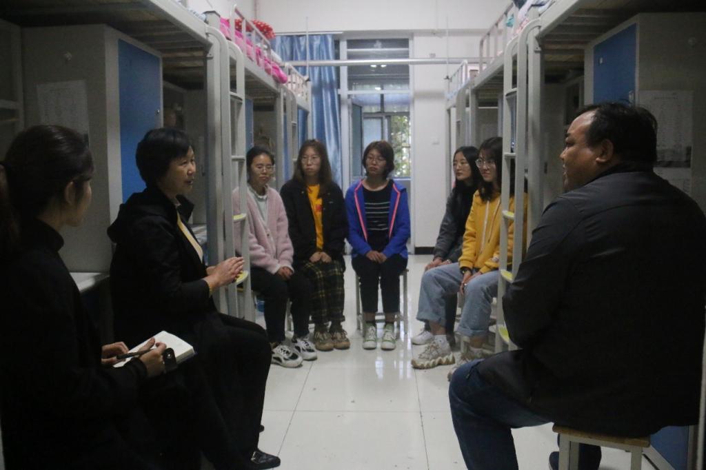 在D09-215宿舍,张董事长从宿舍安全与硬件设施管理、学习规划与人际相处、习惯养成与心态调适等方面与同学们进行了近一个小时的座谈。张董事长叮嘱大家好好学习,不浪费光阴,要会利用公司资源;要有大的格局,坚持好的习惯,要有内涵,“腹有诗书气自华”;要敢于直面困难,善于解决问题,不断历练成长。就同学们提出的图书馆建设问题,张董事长告诉大家公司正在积极推进,希望大家耐心等待。随后,张董事长来到西区员工餐厅与同学们一起就餐。就餐期间张董事长询问员工饭菜质量如何、味道怎样,能否吃得饱、吃得好,详细了解了售卖窗口分布、饭菜花色品种、价格质量等情况,并向同学们介绍了员工餐厅食品的采购流程、价格把控,嘱咐大家在吃的放心、吃的安心的同时,也要厉行节约、珍惜粮食。最后,张董事长鼓励大家在努力学习的同时,也要积极为公司建设高水平应用型本科高校献计献策。