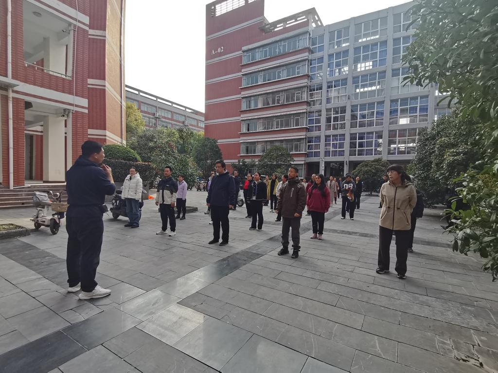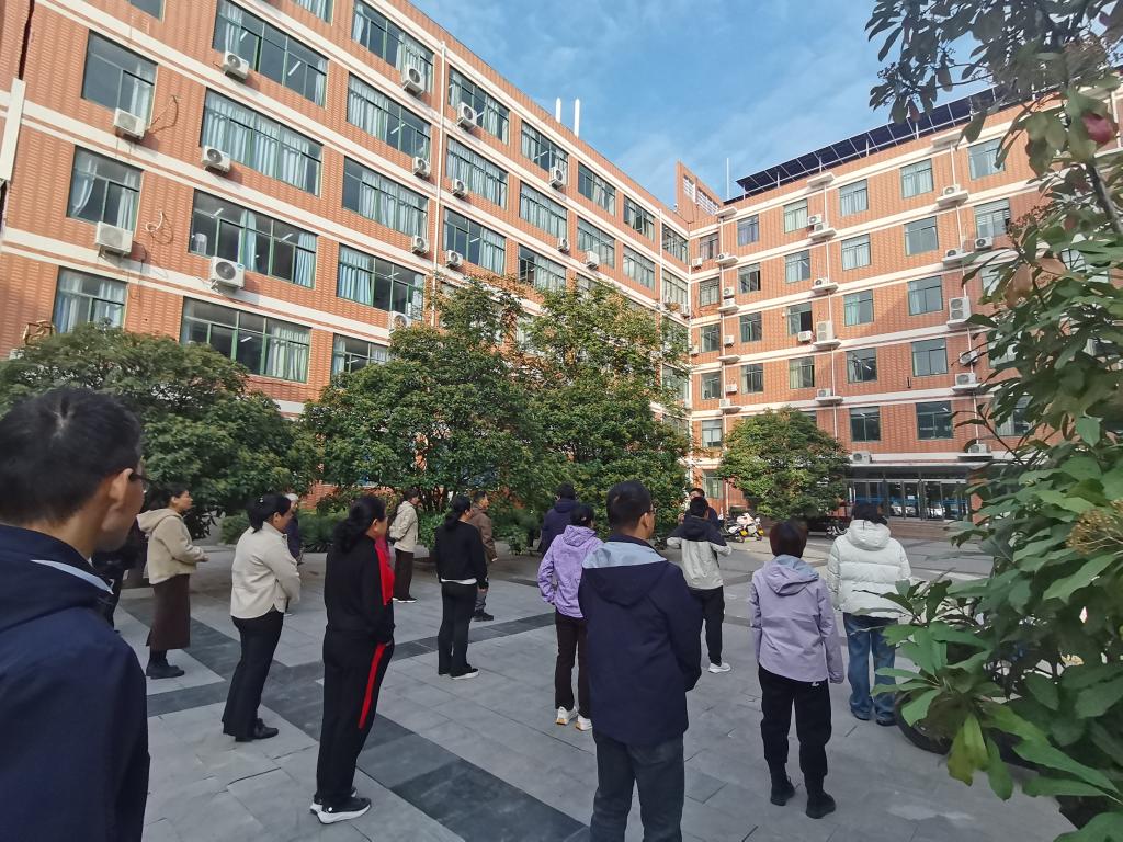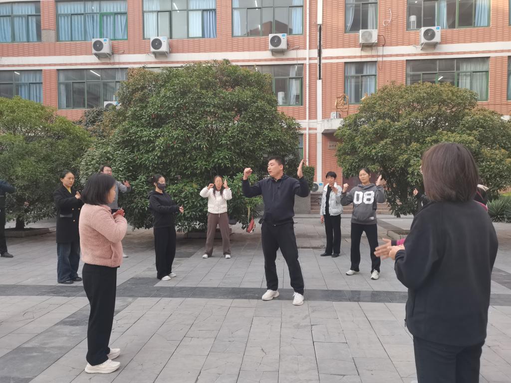 首先,吴森老师强调了科学热身对于预防运动损伤、提升锻炼效果的重要性,并带领大家进行了充分的热身运动,重点活动了手腕、颈肩等关节,为后续学习做好了身体准备。热身结束后,吴老师系统地讲解并示范了八段锦的八个经典体式。从“双手托天理三焦”到“背后七颠百病消”,他对每一式的动作要领、呼吸配合及健身功效都进行了细致地剖析和演示。现场学习的全体教职工热情投入,他们认真模仿、反复练习,在一招一式中感受身体的舒展与力量的凝聚。大家纷纷表示,通过亲身体验,切实感受到了八段锦对缓解肩颈疲劳、提升身体活力的积极作用。