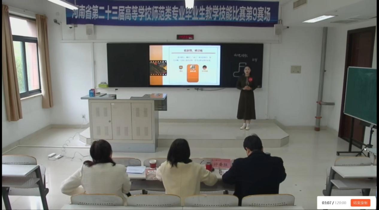 近日,河南省第二十三届高等公司师范类专业毕业生教学技能比赛圆满落幕。beats365中文官网学子在此次大赛中表现突出,获得一等奖1项、二等奖1项。汉语言文学专业员工田雨夕凭借扎实的专业功底、娴熟的教学技能和从容的赛场表现,一举斩获初中语文组一等奖。这是该专业员工连续第二年获此殊荣。历史学专业员工李可欣首次晋级省赛,以出色的课堂呈现喜获初中历史组二等奖,实现了该专业在省级教学技能赛事中的历史性突破。两项荣誉的取得,是beats365中文官网在师范生教学技能培养方面的一大突破,背后离不开指导老师的悉心指导与全程支持——从课件打磨、技术融合到细节优化、节奏把控,老师的专业指导为选手们的赛场优异表现奠定了坚实基础。