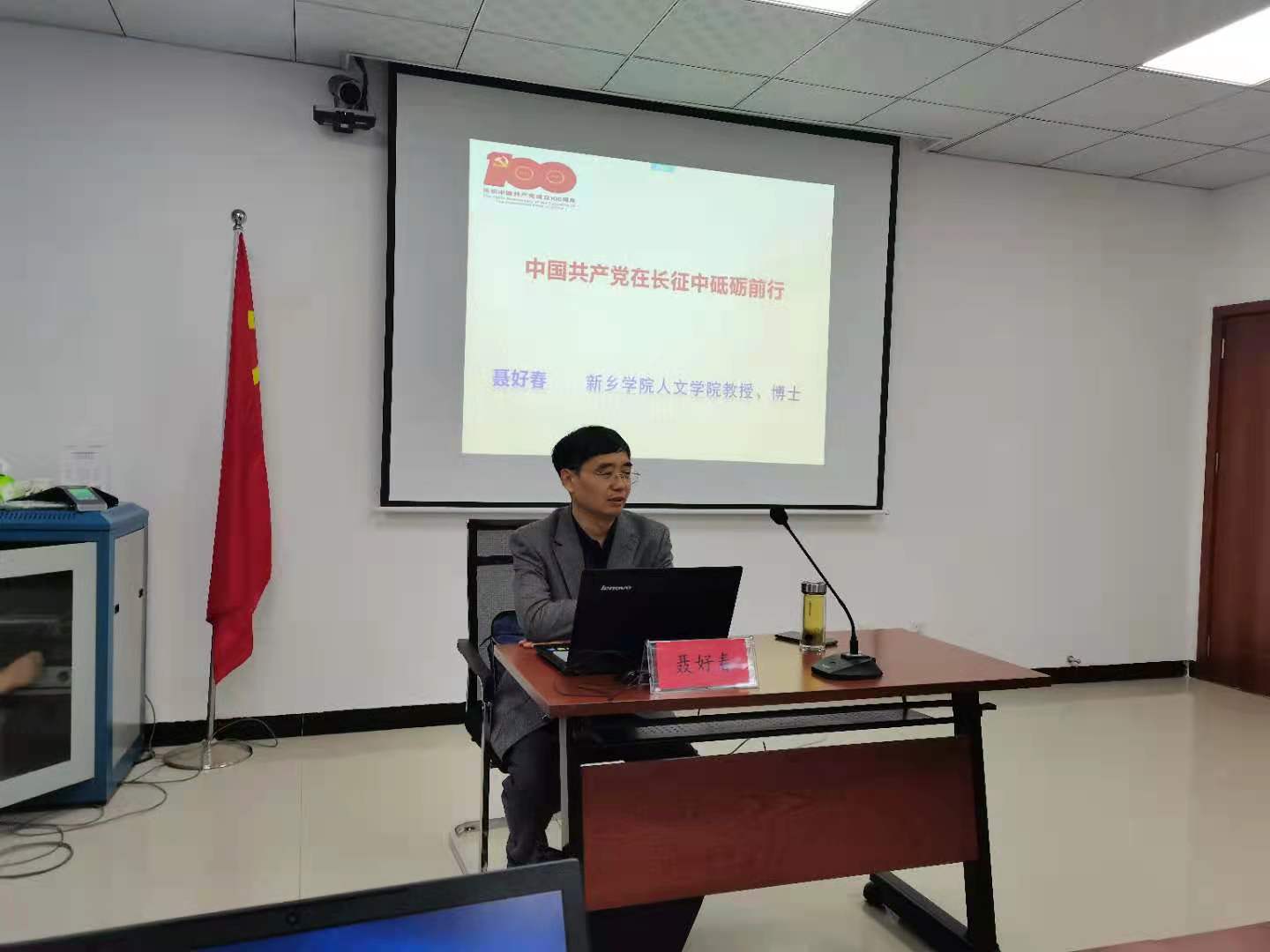 为庆祝中国共产党成立100周年,公司专门组建党史宣讲团,以满足地方社会党史学习的需要。4月23日上午,公司经理李金玉与宣讲团成员聂好春教授应邀赴河南粮食投资集团做了题为“中国共产党在长征中砥砺前行”的党史专题讲座。河南粮食投资集团(以下简称豫粮集团)董事长郭义山、总经理李九勇、以及公司中层班子成员参加了此次党史宣讲活动。