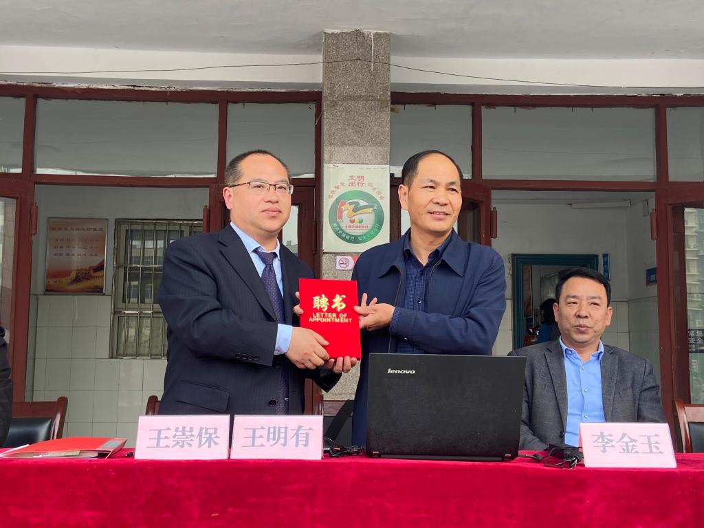 鉴于王明有老师渊博的专业知识、丰富的教学经验、扎实的教学功底,第三十二中学聘任王明有老师为校外思政课辅导员,并由董事长王崇宝为王明有老师颁发了聘书。