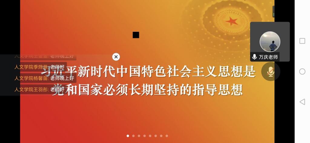 此次党课培训活动以“学习习近平新时代中国特色社会主义思想”为主题。首先,万庆老师通过三个简洁有力的思考题引出今天党课的主题——习近平新时代中国特色社会主义思想。接着,万庆老师采用图文结合的方式生动形象的讲解了中国特色社会主义进入新时代的表现,回顾了世界与中国的社会主义发展史,讲解了坚持习近平新时代中国特色社会主义思想的正确性和必要性,强调习近平新时代中国特色社会主义思想是党和国家必须长期坚持的指导思想。最后,万庆老师希望同学们能够不负时代重托,早日成为担当民族复兴大任的时代新人。同学们认真聆听,积极与老师互动,并做好详细笔记,以便加深对此次党课内容的理解。此次党课在同学们热烈的掌声中圆满结束。