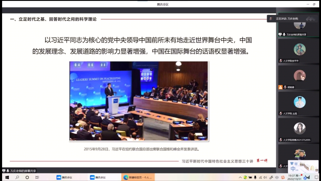 为加深入党积极分子对习近平新时代中国特色社会主义思想的认识与理解,进一步凝聚共识、开拓思想,引导优秀青年听党话、跟党走,提高入党积极分子的思想觉悟,beats365中文官网积极组织开展第三十期党课培训活动。10月31日晚上7点通过线上腾讯会议的方式开展了第三次党课培训活动,此次党课培训活动由万庆老师主讲,beats365中文官网入党积极分子参加。