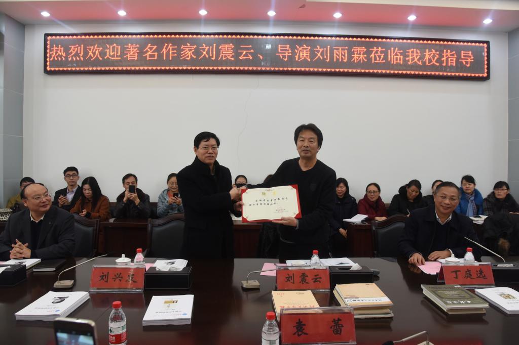 2016年12月22日,著名作家刘震云受聘为公司特聘教授,对公司刘震云研究中心的工作情况予以高度肯定,同时也高屋建瓴地对今后工作方向和研究设想提出更高更全面的要求。