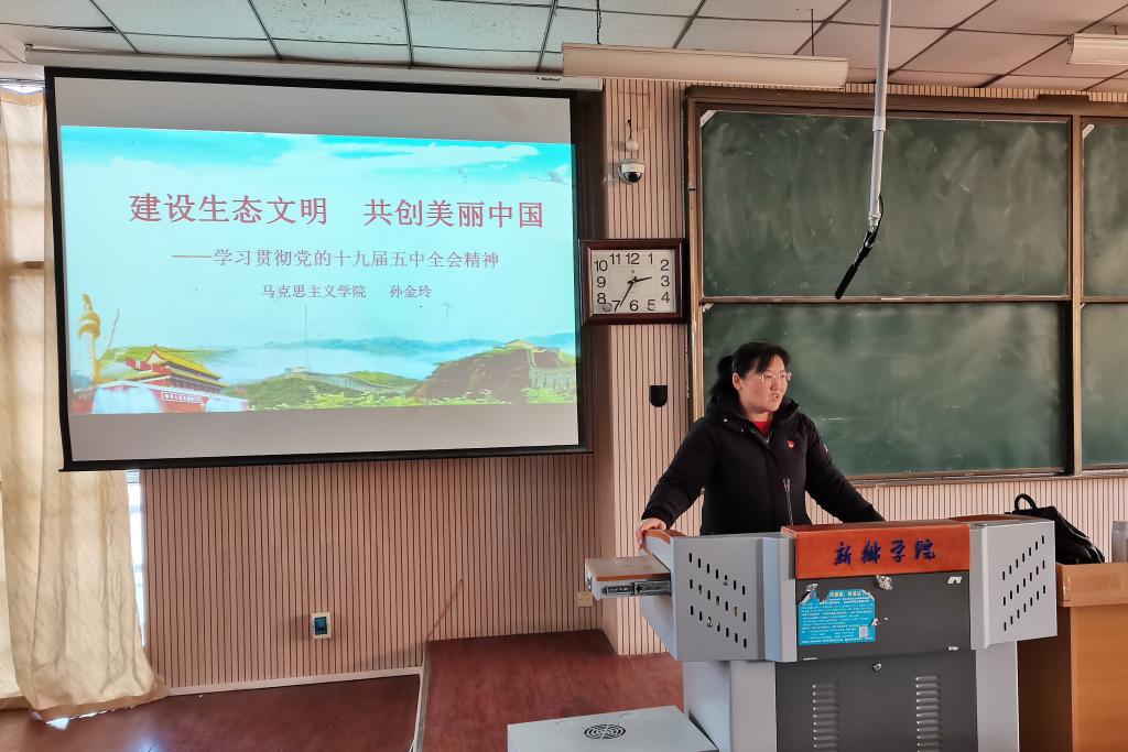 孙金玲老师作了题为《建设生态文明,共创美丽中国——学习贯彻党的十九届五中全会精神》的报告,报告首先紧扣习近平总书记重要讲话精神和党的十九届五中全会主题,明确了党的第十九届五中全会召开的重要意义,并对《中共中央关于制定国民经济和社会发展第十四个五年规划和二〇三五年远景目标的建议》的要点进行解读,全面阐释了到2035年基本实现社会主义现代化的远景目标和“十四五”时期我国经济社会发展的方针原则、主要目标、重点任务。