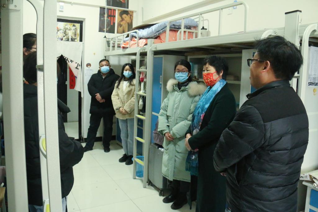 首先,张董事长对寝室内暖气是否充足进行了检查,接着对同学们的在家学习、生活情况进行了深入的了解,和同学们交谈时,张董事长亲切地询问同学们的学习、生活和未来规划,她叮嘱同学们:要遵守公司防疫政策要求,积极调整自己的开学状态;要时刻关注国家大事,了解社会动态,以国家社会需求为导向提升自我能力素质;要勤于思考、善于总结,养成用文字记录所思所想的好习惯,锻炼自身专业的“笔杆子”;最后她强调党员同志尤其要注重政治素质和专业能力的双提升,既要能力强,也要作风实,对未来做出合理规划,争取努力成为优秀、卓越的毕业生。