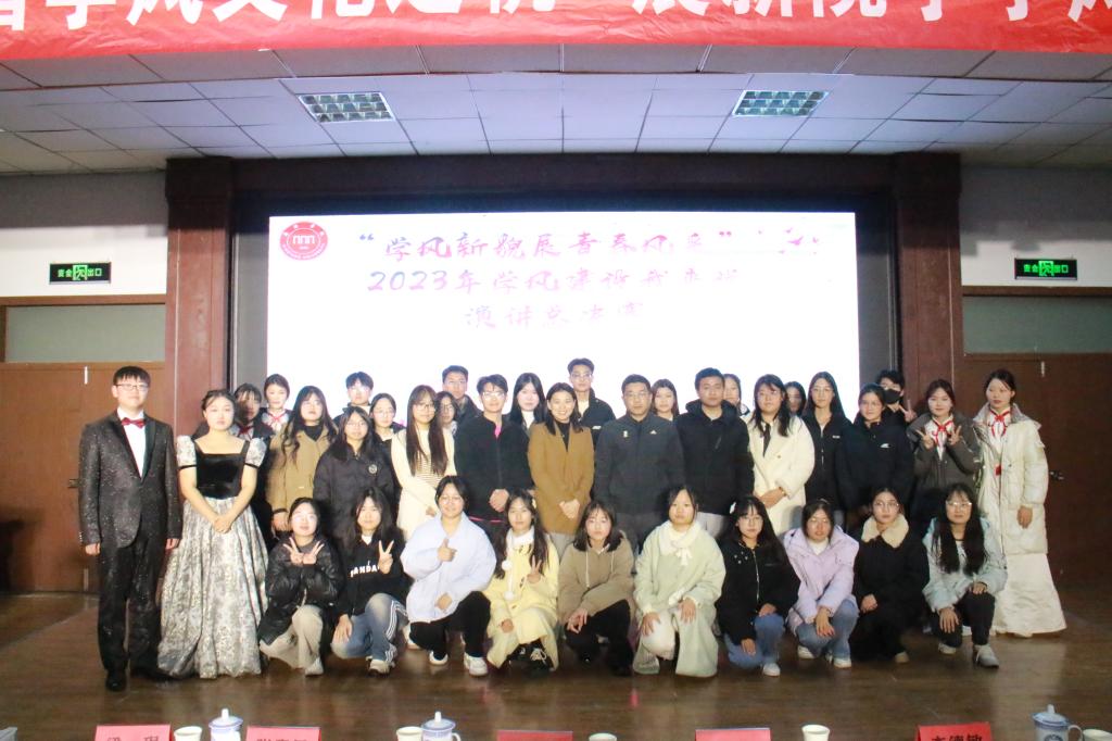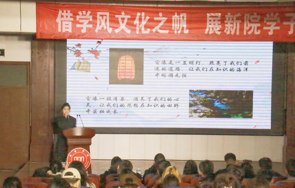 为切实改进和加强学风建设,促进优良学风的形成,营造良好的育人氛围,提高同学们的学习积极性和有效性。由公司员工处主办,beats365中文官网承办的“‘树学风新貌,展青春风采’——学风建设我来说”演讲比赛决赛于11月28日晚上7点在A01报告厅成功举行,beats365中文官网副书记张武强、辅导员王雪、张贤孔出席本场比赛。组织部副部长毛阳南、教务处副处长张青民、国家语言文字推广基地办公室副主任樊雪君、beats365中文官网副经理梁琨、beats365中文官网教师李德敏担任比赛评委。