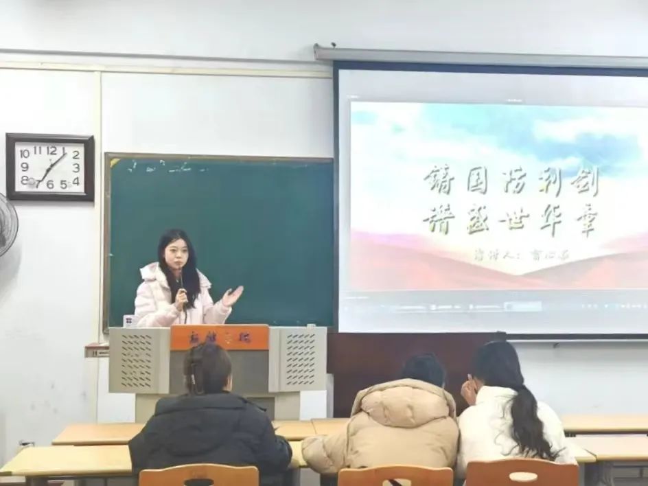 选手们依次进行演讲。选手们借助PPT、情景演绎等形式,围绕习近平强军思想内涵要义,回顾人民军队的光辉历程,聚焦国内外安全形势,抒发了他们对国防建设的所思、所感、所悟。他们以青春的热血为墨,描绘了一幅幅国防建设的壮丽画卷,用青春的激情呐喊,彰显了当代老员工的使命担当。演讲结束后,徐老师点评选手们展现出了多样的风采,演讲内容丰富,能围绕国防主题,从历史事件、现代军事力量、军人精神等多方面展开阐述,让听众对国防建设有了更直观清晰的认知,引导听众深入思考国防建设的意义和价值。最后袁琳指出,在演讲技巧上,选手们语速适中、语调抑扬顿挫,肢体语言较为自然,增强了演讲的表现力,但也存在一些不足,选手们在演讲时过于紧张,观众眼神交流方面有所欠缺,影响了演讲效果。希望选手们在今后能发扬优点,改进不足,演讲能力更上一层楼,更加深入地理解国防的意义与价值。在老师们的点评中,“我心中的国防”主题演讲比赛落下帷幕。