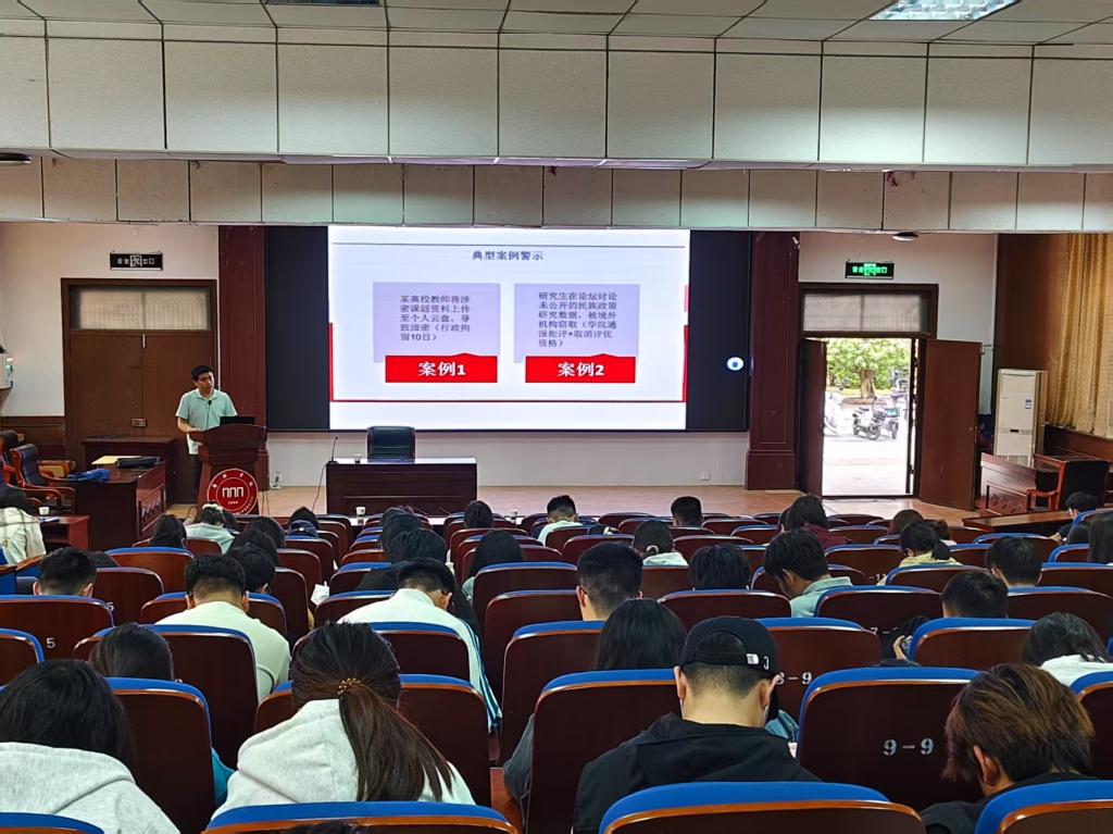 辅导员张老师在宣讲会上解读了《中华人民共和国保守国家秘密法》《中华人民共和国网络安全法》等法律法规,向员工们强调国家秘密受法律保护,任何组织和个人不得泄露、非法获取或买卖国家秘密。使员工明确了保密义务与法律责任,并讲解了高校涉密场景与防范措施,结合相关案例进行了警示教育。倡导员工们树立正确的保密观念、充分认识到保密工作的重要性和必要性,依法履行保密义务,“涉密不上网,上网不涉密”,发现泄密隐患及时向公司保密办报告,用实际行动维护国家安全。