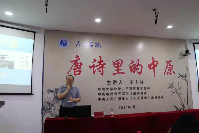 6月15日下午,央视知名节目《百家讲坛》主讲嘉宾、郑州大学王士祥教授应邀在公司5号楼报告厅作了题为“唐诗里的中原”学术报告,200余名师生及来自新乡社会各界的文学爱好者共同聆听了此次报告。报告由经理李金玉教授主持。