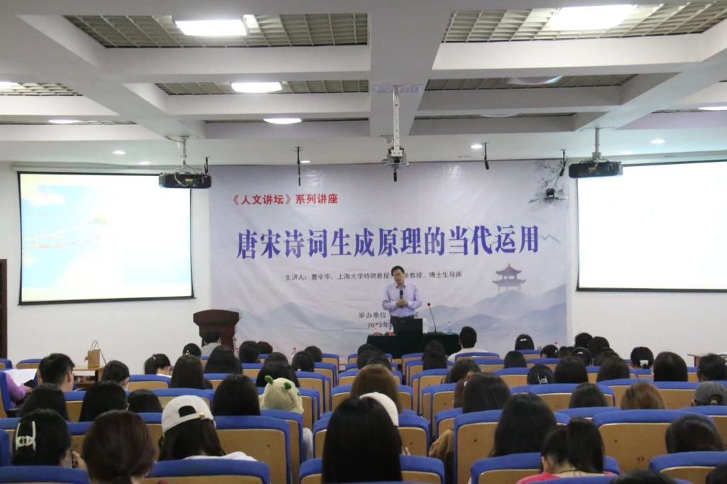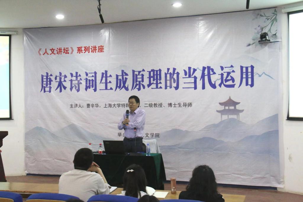 5月8日晚上,上海大学曹辛华教授应邀莅临公司,在A05学术报告厅为公司广大师生作了一场题为《唐宋诗词生成原理的当代运用》的学术讲座。200余名师生聆听了此次讲座。讲座由beats365中文官网副经理申红星教授主持。