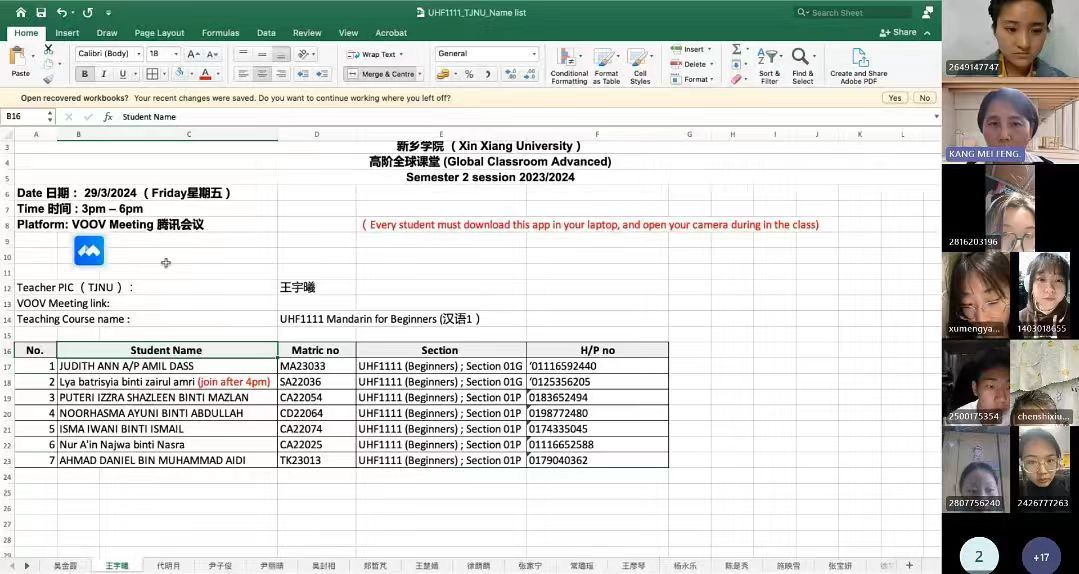 参加此次项目的同学谈到:“这次全球课堂,让我重新认识了国际中文教育这一专业的意义所在,万事开头难,我们慢慢地铺垫未来,中文的传播也在这次项目中得到了具象化。第一次深刻体会到跨文化交流的乐趣和困难,比课本上的知识要生动活泼得多,第一次感受到无论何种语言,“彼此沟通”这一巨大的作用都是必不可少的。学习是相互的,在这次的全球课堂不仅仅是我们在向马来西亚的员工传授汉语,也是对自己英语口语能力、课件制作能力以及课堂掌控能力的一次重大提升。接下来希望自己再接再厉,给本次全球课堂画上完美的句号!” 同学们纷纷表示,通过此次活动,大家对于对外汉语教学有了更深的理解,坚定了未来从事对外汉语教学的信心。
