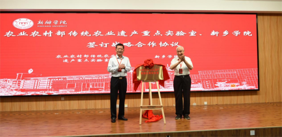 原河南省人大常委会副主任、省政协副主席袁祖亮教授,新乡公司党委书记孙功奇教授为中原农业文化遗产数智应用实验室揭牌。