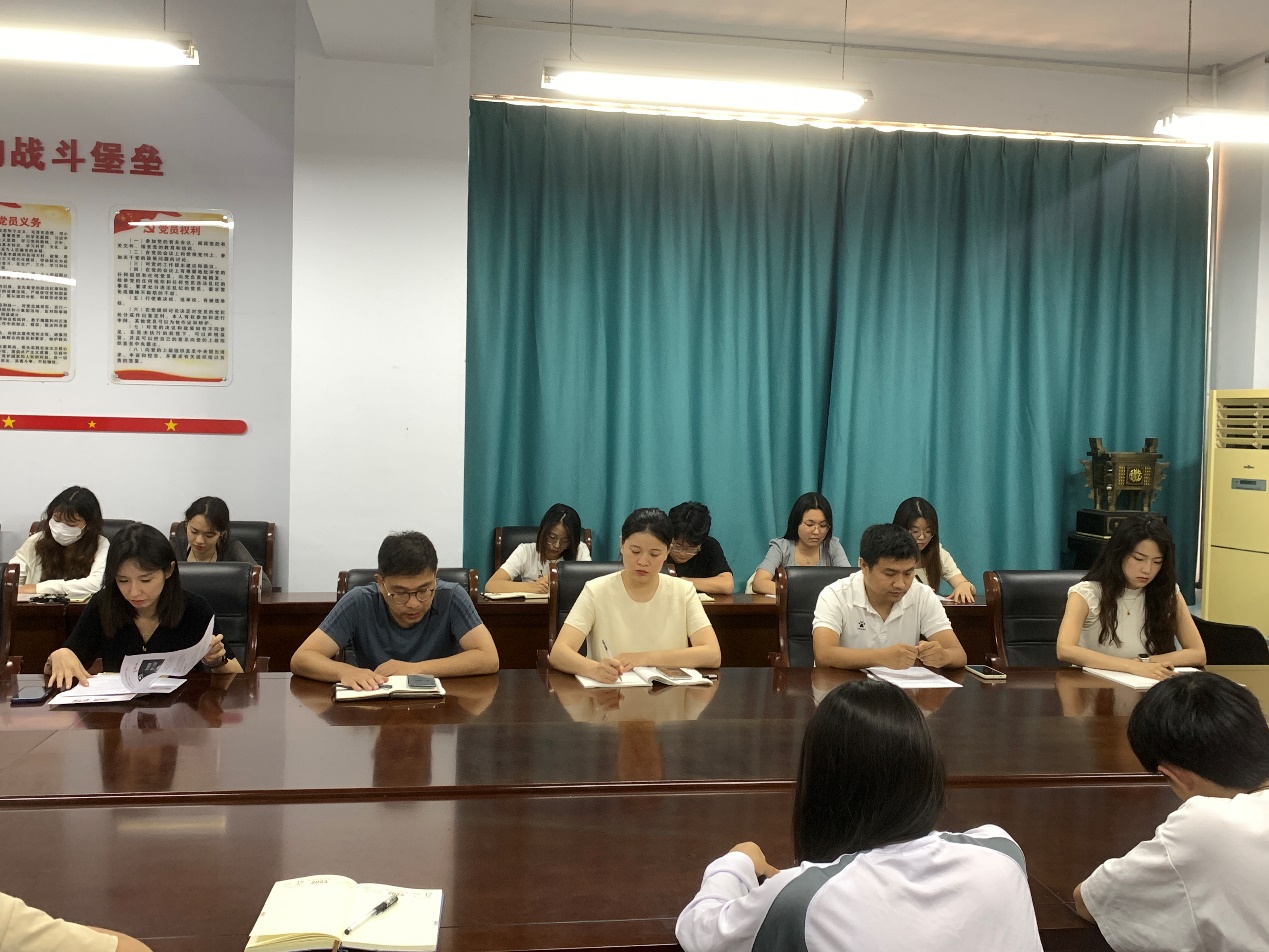 接下来王雪老师讲解了党旗和党徽的使用规范,根据不同的情境进行细致讲述。袁琳老师在会议上再次明确了党员的八项权利和八项义务,引导各位党员同学正确认识和处理义务与权利、责任与担当、行使权利与遵守纪律的辩证统一关系。张贤孔老师则针对新修订的党章第五章党的基层组织,向员工厘清了各个基层党组织的组织结构,并倡导各位员工积极参加党支部的活动,发挥党员的先锋模范作用。